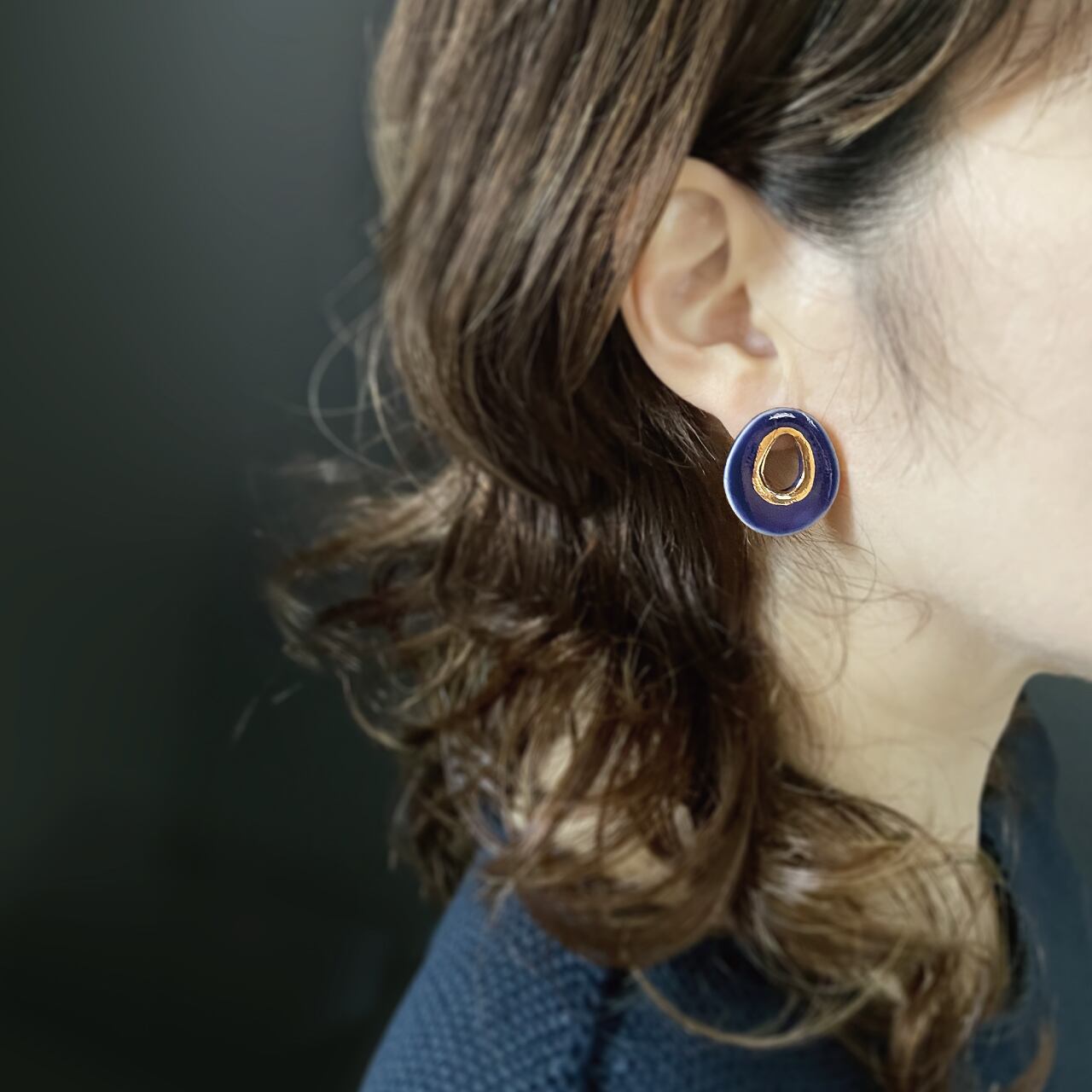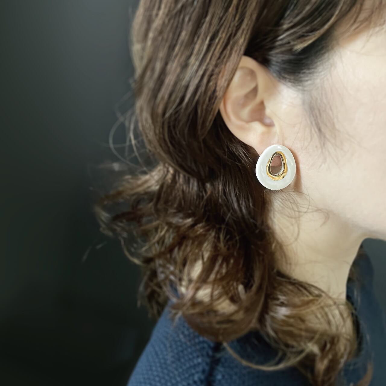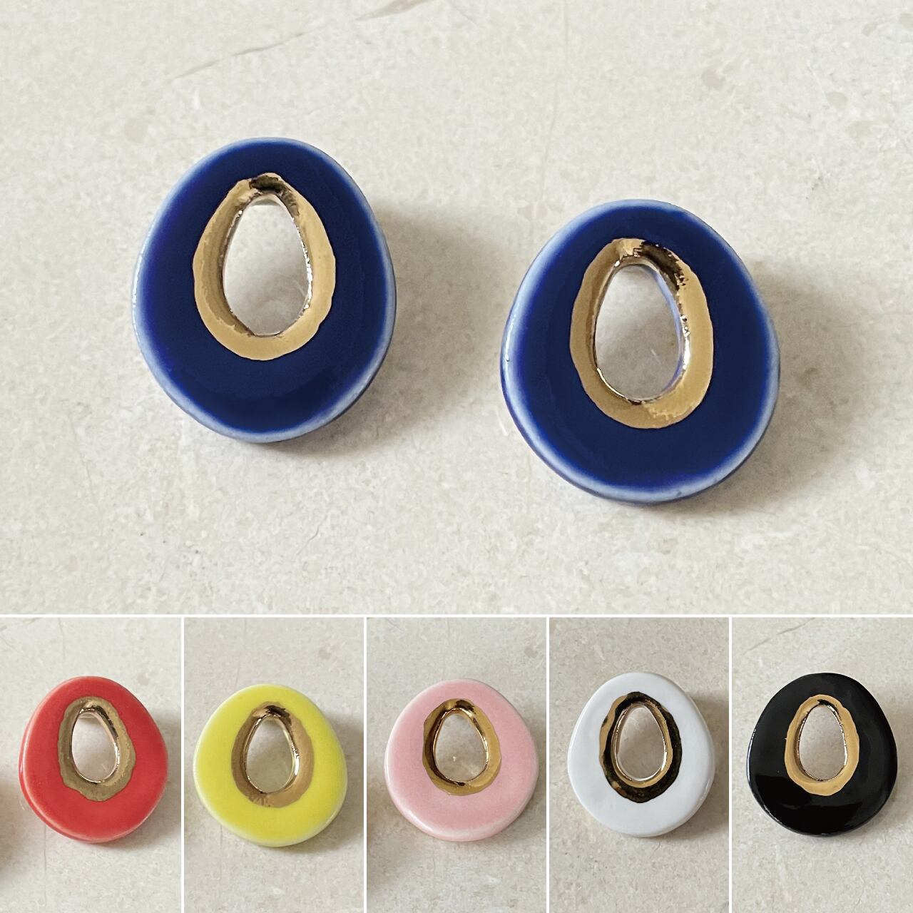 楕円型のユニークでエレガントな磁器で作られたピアスです。